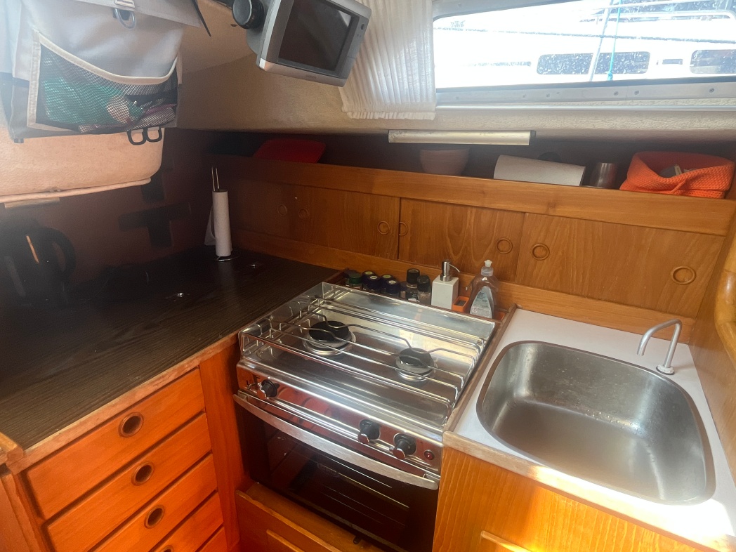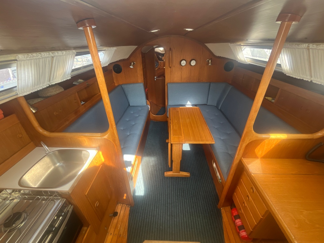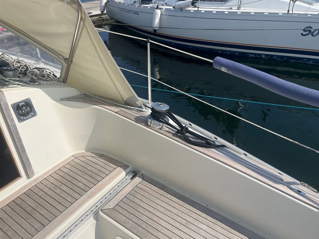 Båden fremstår løbende opdateret med nyere sejl, sprayhood og kaleche, så den er klar til nye eventyr. Bunden er behandlet med VC-17 tyndfilmsbundmaling. En flot og velsejlende klassiker, der kombinerer sejleglæde, komfort og ægte bådcharme.