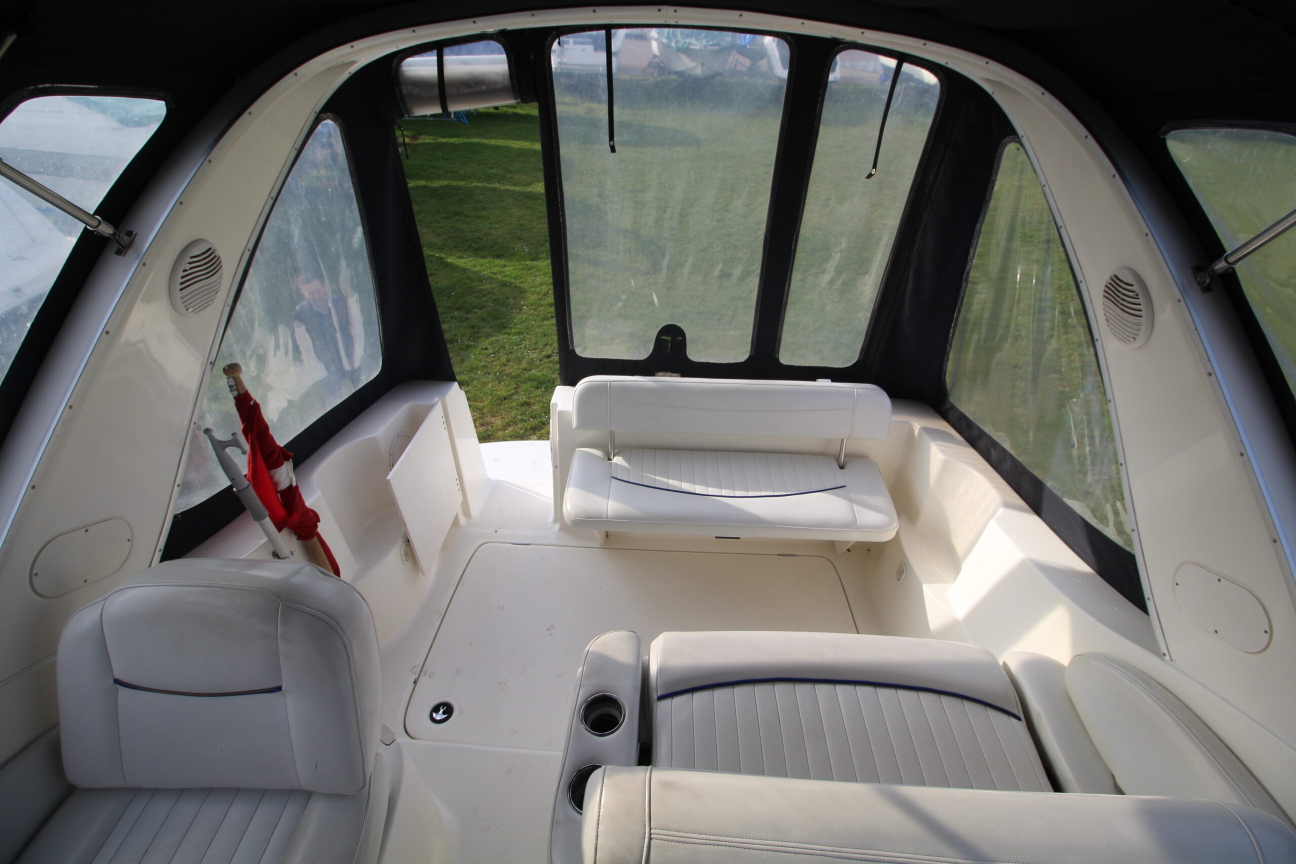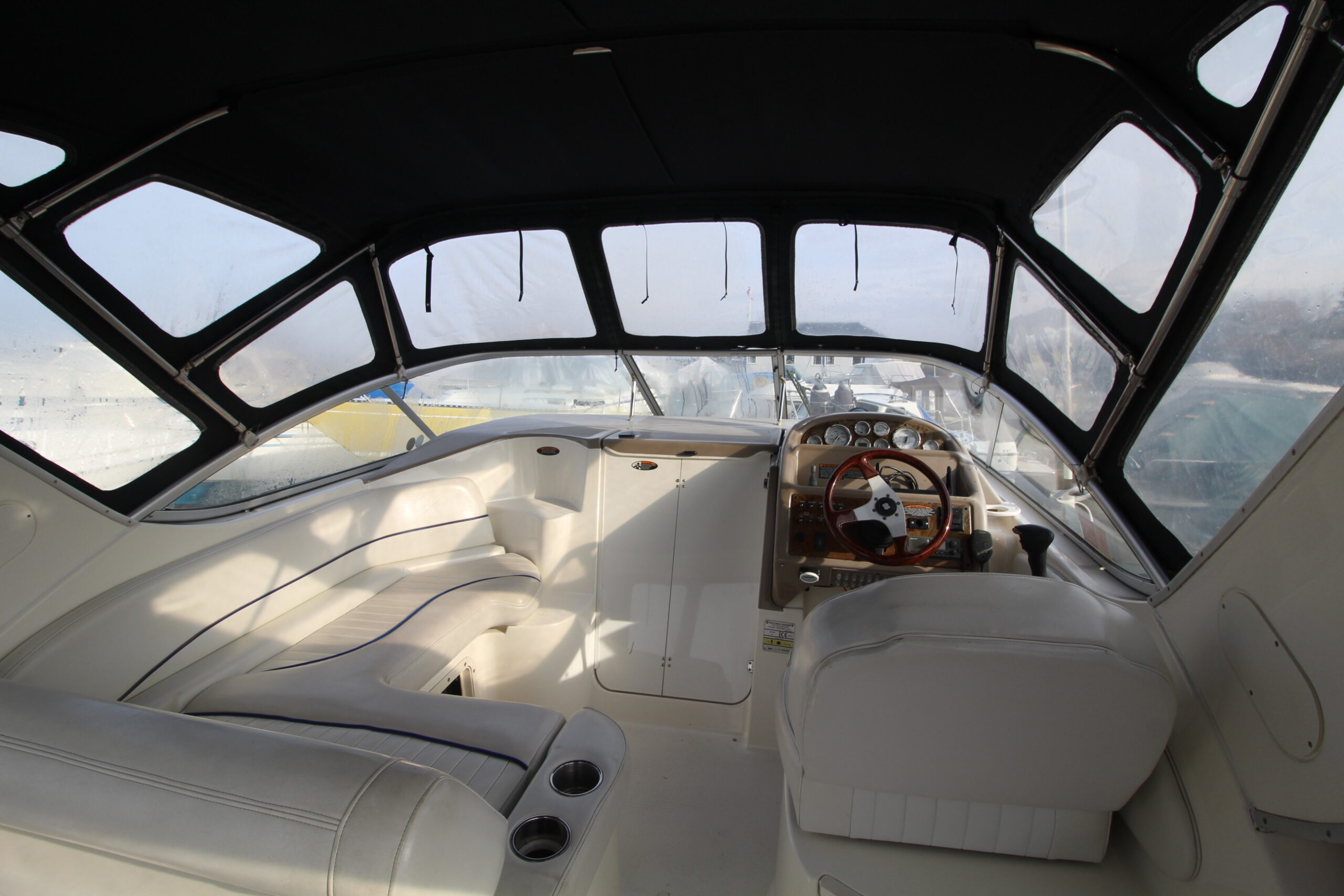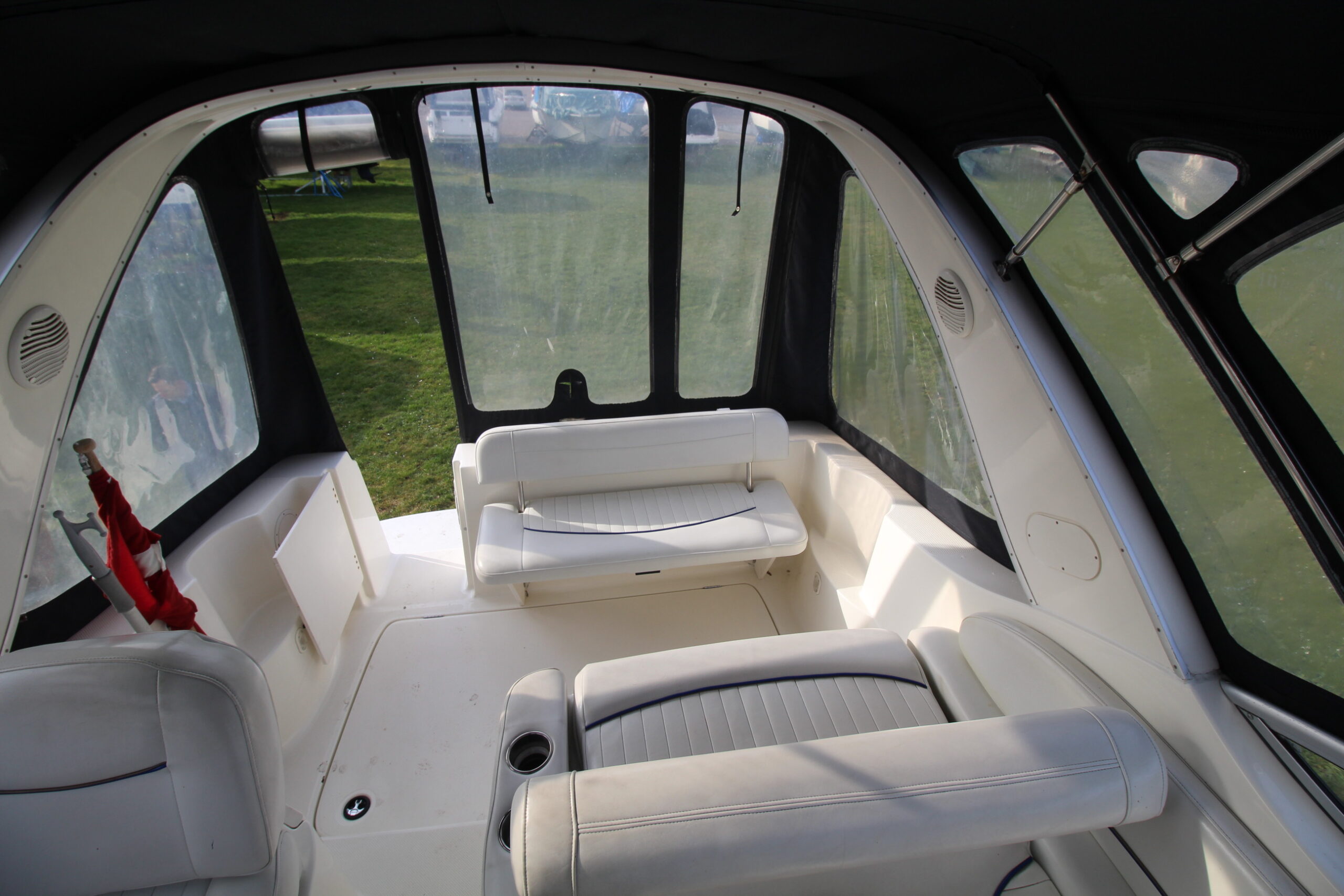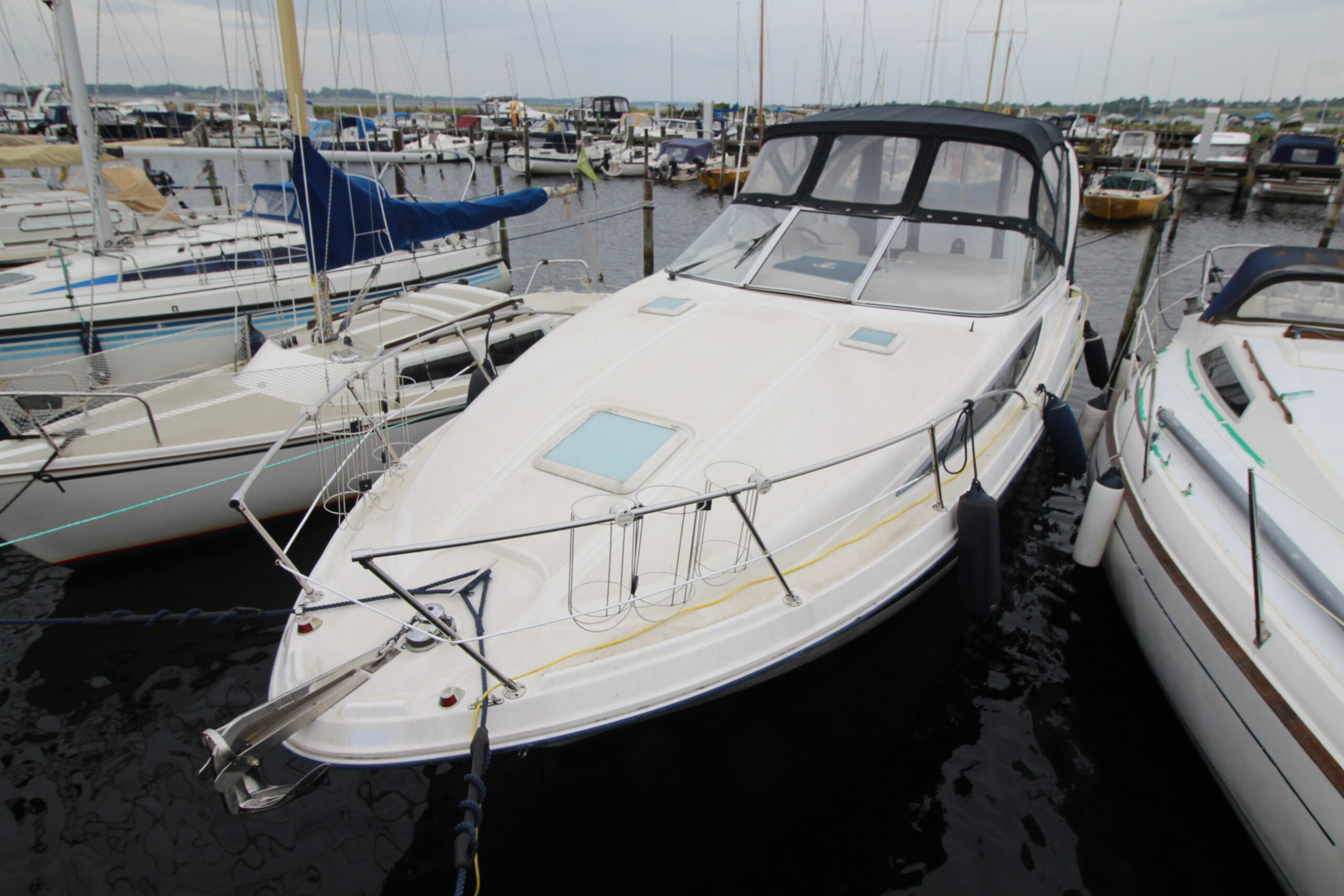 BAYLINER 285 udbydes nu til salg hos BOATERY.  En rummelig familiebåd med stort cockpit med tilhørende høj kaleche med fuld ståhøjde. Styreplads i STB-side samt godt sofaarrangement, der hurtigt kan omdannes til solseng.
