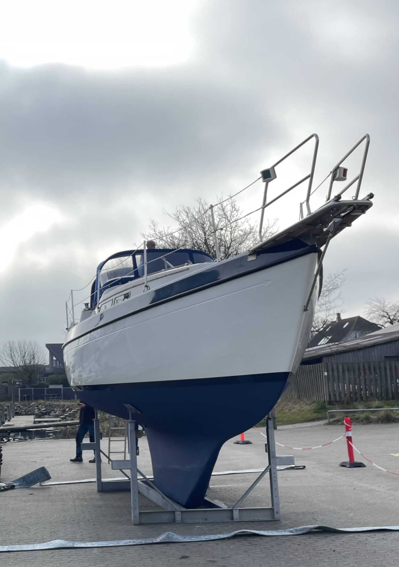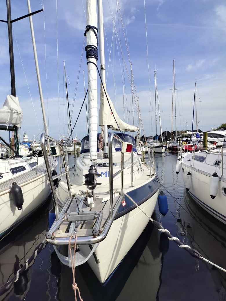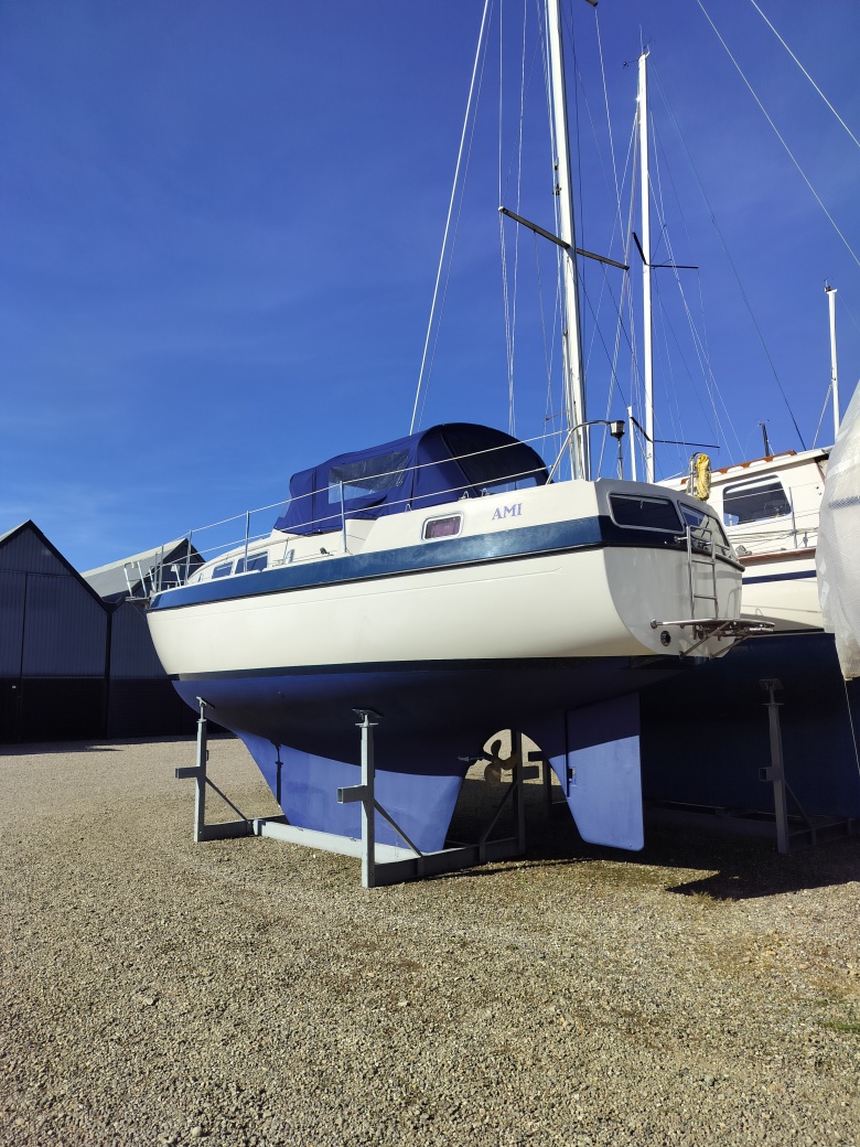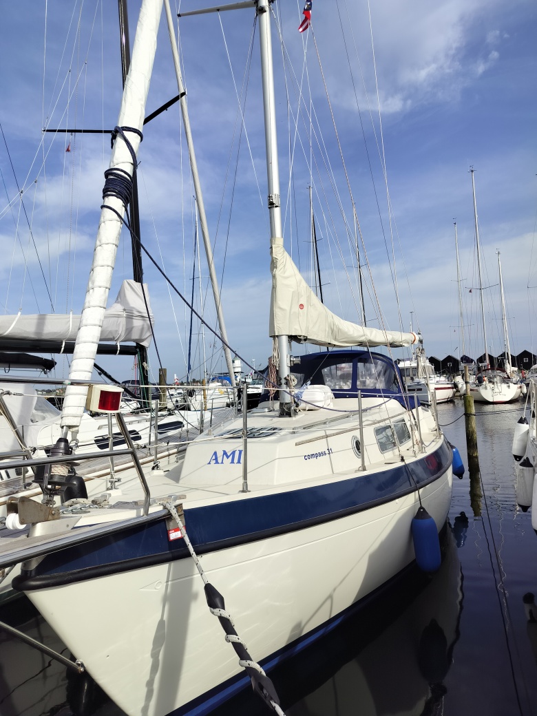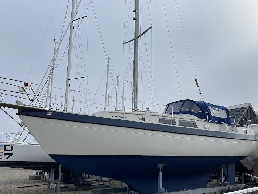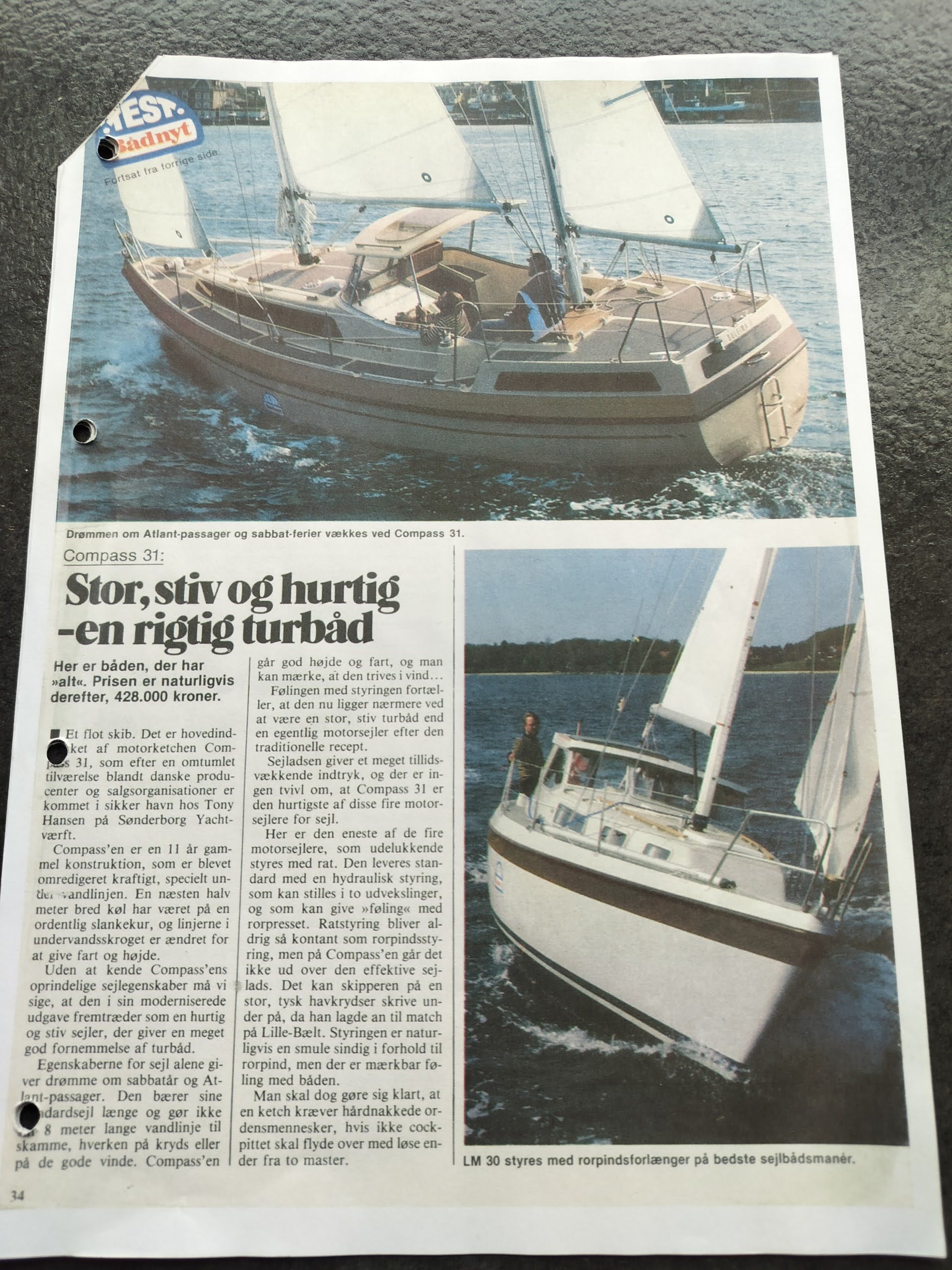 Meget flot, velholdt og opdateret eksemplar af den dansk byggede Compass 31, som er en klassisk langkølet motorsejler. Bådens lange køl giver sammen med et stort ror, god retningsstabilitet udstyret med storsejl med et reb og Lazyjack, rulleforstag med Genua. Båden er let at manøvrere i havne og båden sejles let af en enkelt person.