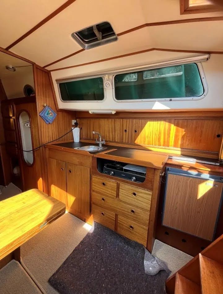 Compass 31 er kendt for sin meget solide byggekvalitet og et helt fantastisk, rummeligt interiør; stort og sikkert centercockpit, hvorfra der er adgang til lys og rummelig agter kahyt med 2 gode enkeltsenge samt masser af skabsplads. (nok største agter kahyt på den størrelse både) Fra agter kahytten har du direkte adgang til det imponerende motorrum. Rummelig og lys salon hvor, med rummelig U-sofa med bord samt pantry med vask, gasblus og køleboks med kompressor, salonen har loftshøjden er 1,83 meter og som også kan omdannes til 2 sovepladser. Forkahytten rummer to sovepladser, og det er også fremme i båden at man finder badeværelse med håndvask og toilet. (der er installeret holding tank i båden)