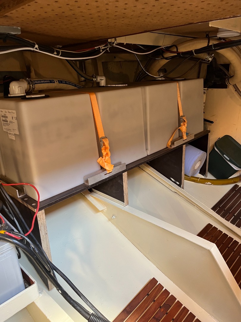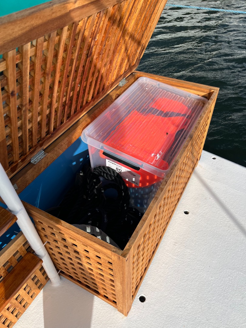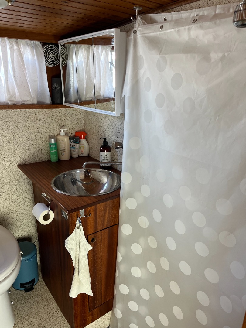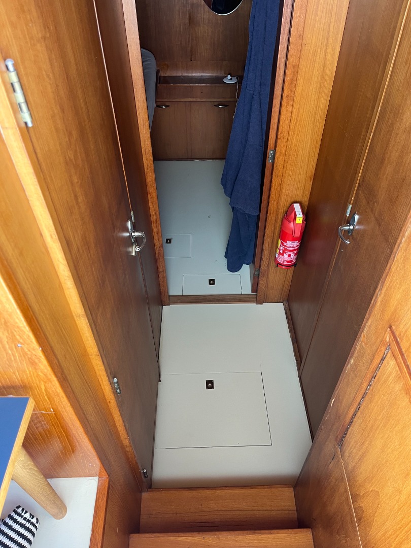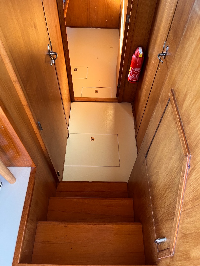 Om læ finder du salon indrettet med daybeds og skønt lysindfald fra de store vinduer: Forrest i salon trappe ned til pantry med slyngelstuer (dinette) - Forrest i båden forkahyt - Bagerst i salon trappe der fører til båden Master cabin med dobbeltseng. Der er masser af album om læ med god ståhøjde overalt, 200 cm i kahytter og salon, 190 cm i bruseren.