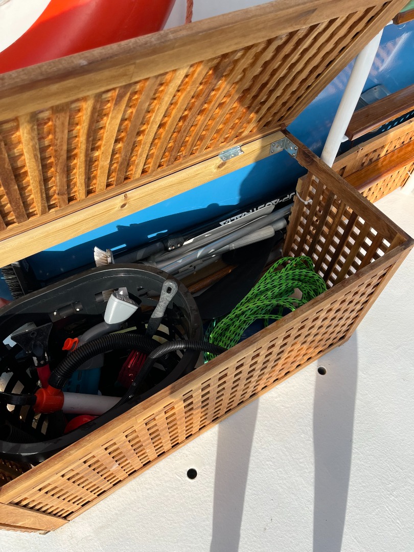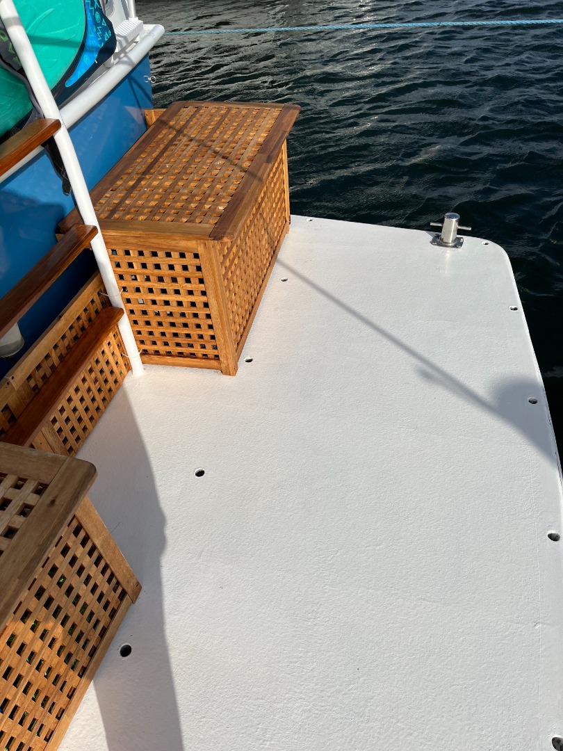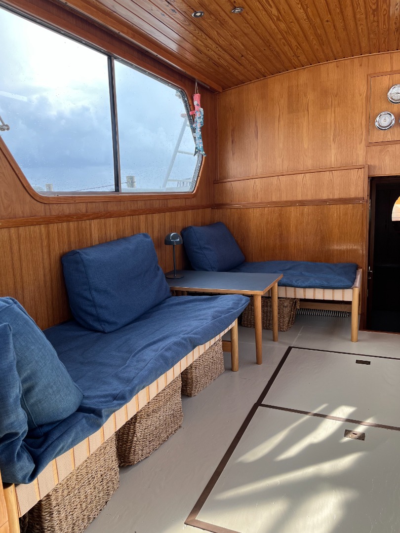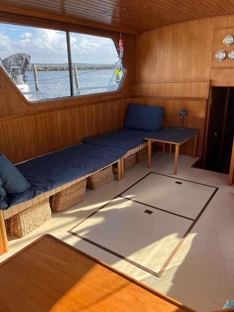 Udearealerne på denne hollandske dame er skønne. Masser af dæksplads, godt søgelænder, popup dæk med styreplads og som tidligere nævnt kæmpe badeplatform, der vil være et hit for de unge sjæle...pssst og nok også de ældre !!!