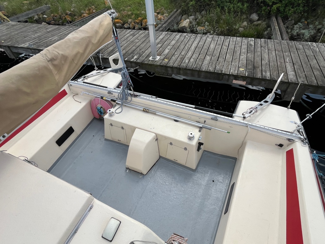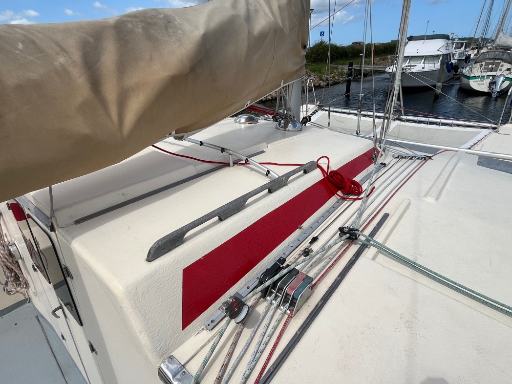 I 2021 har nuværende investeret i nyt cockpittelt, der giver dejlig læ for vejret og skaber ekstra siddeplads til afslapning og måltider om bord. Det store cockpit er perfekt til fælles hygge og forlænget sejlsæson, da teltet beskytter mod både sol og regn.