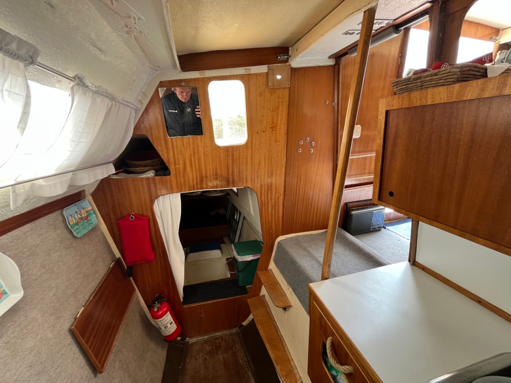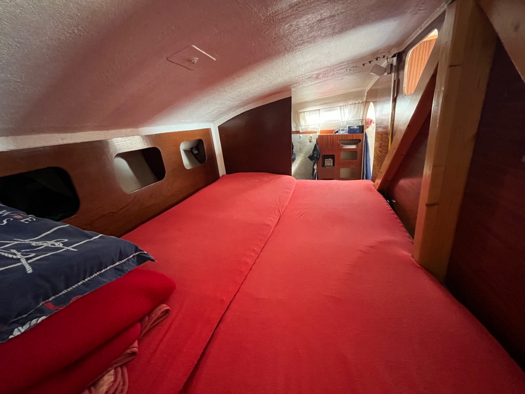 ➖Havkat 27 C fra 1981 er en charmerende og rummelig katamaran, der byder på stabilitet og komfort i særklasse. Bådens brede skrog giver god plads i cockpittet og kahytterne. Der er tre kahytter med fire køjer i alt – herunder en stor dobbeltseng på 140×200 cm. Med en loftshøjde på ca. 1,80 m kan man stå ubesværet oprejst i kahytten. Båden er i det hele taget meget rummelig, hvilket gør den ideel til weekendture med familie eller venner.