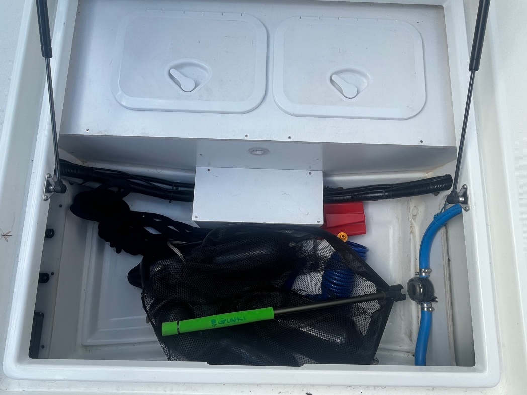 Båden er spækket godt op med udstyr, her kan vi bl.a nævne: