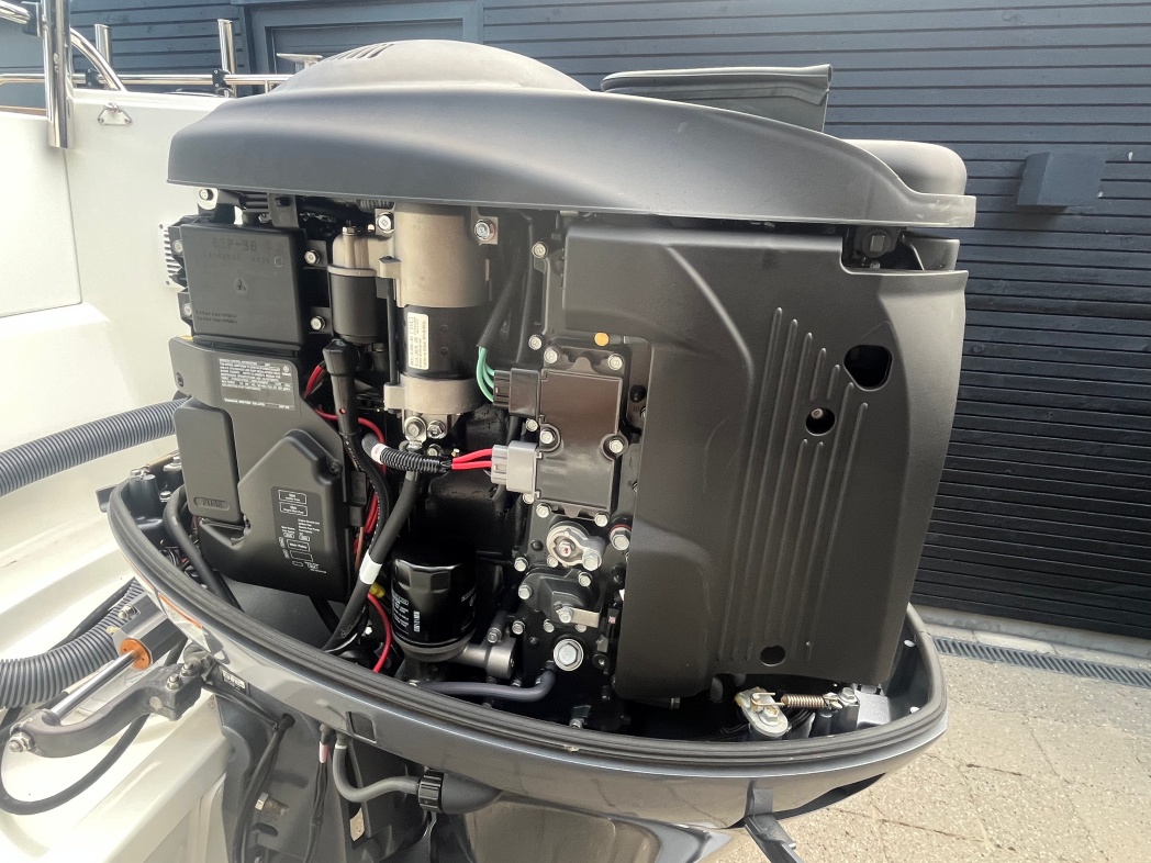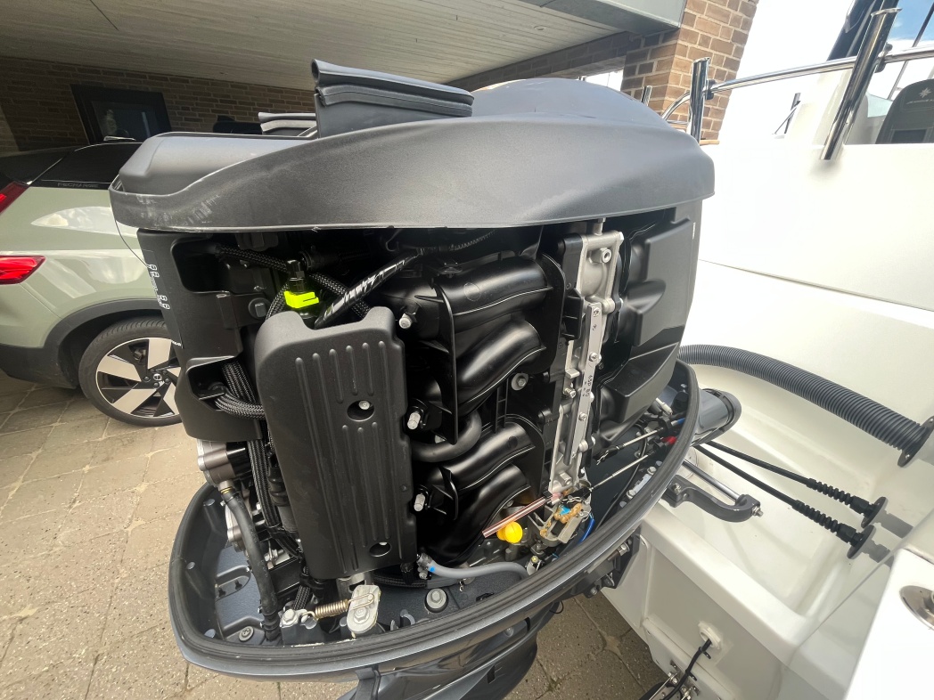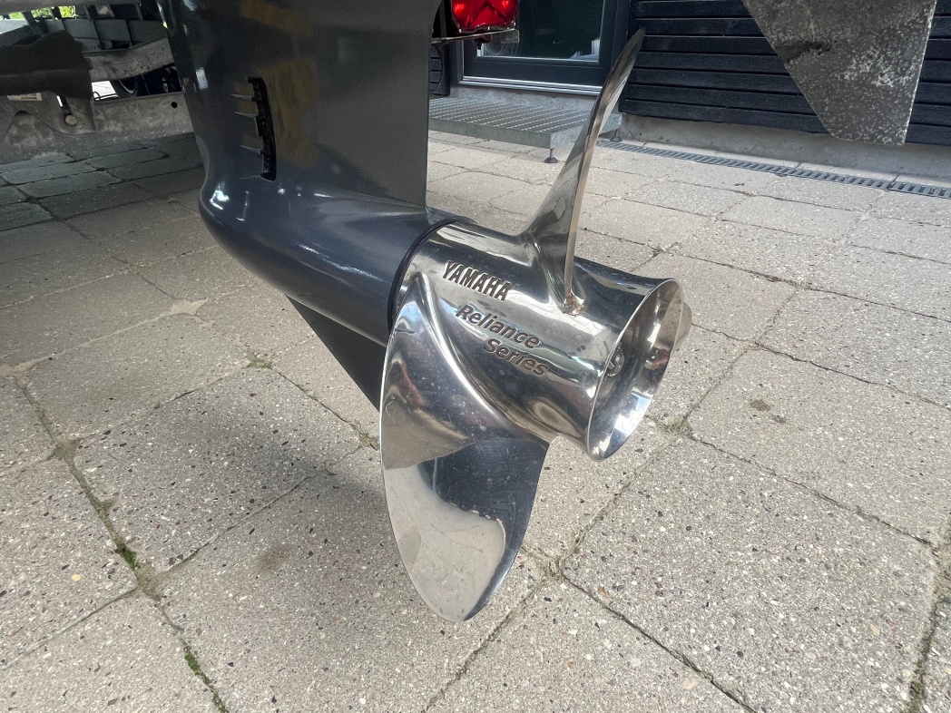 Motoren er fra altid pålidelige og anerkendte Yamaha. Motoren yder 150 HK, er med rustfri propel og hydraulisk styring. Serviceret og vedligeholdt af professionel marinemekaniker.