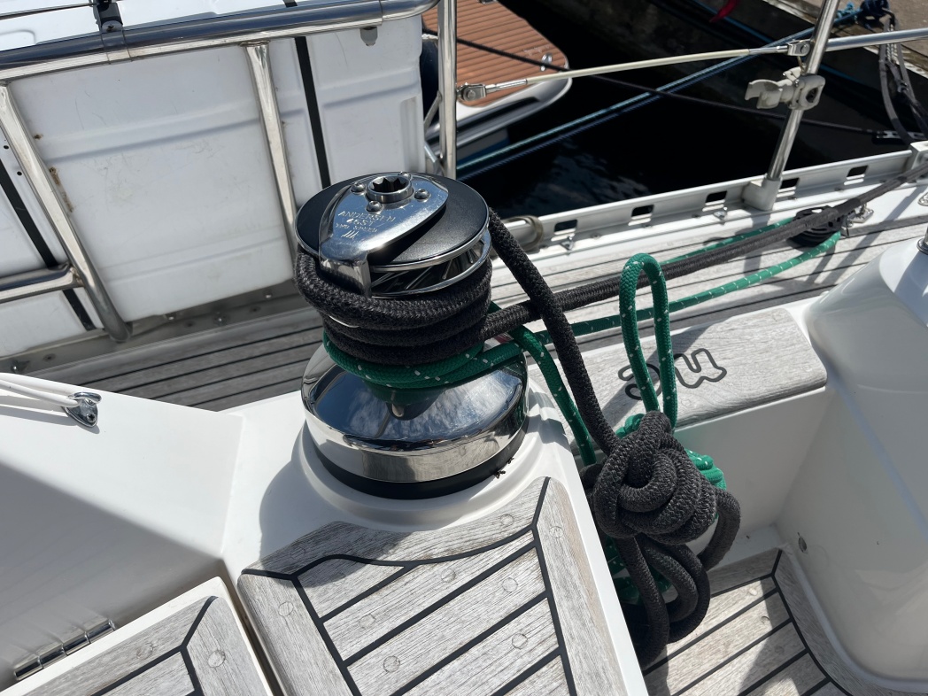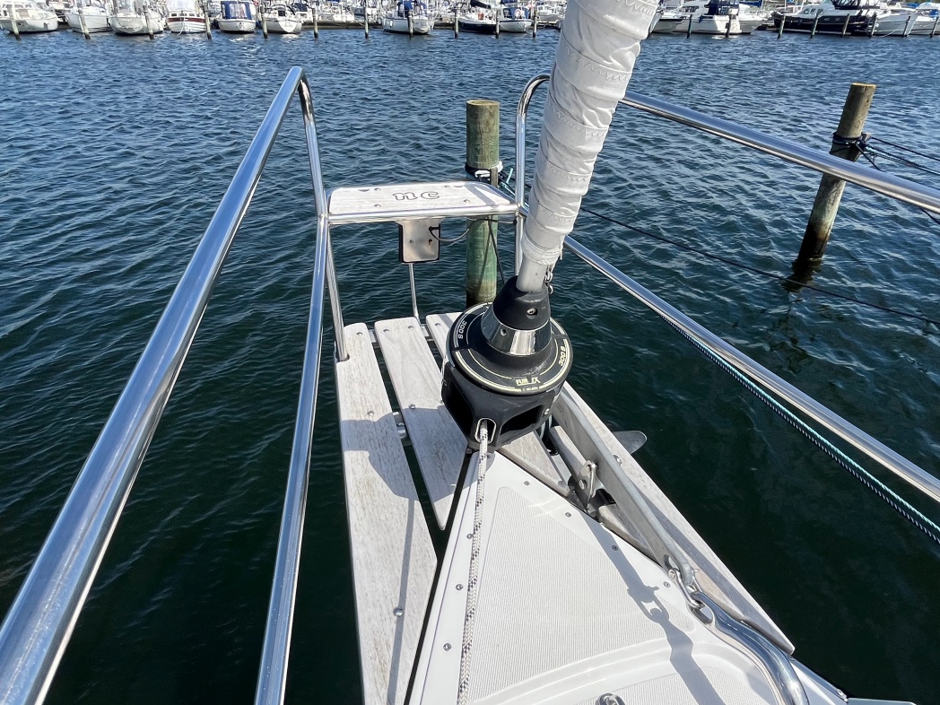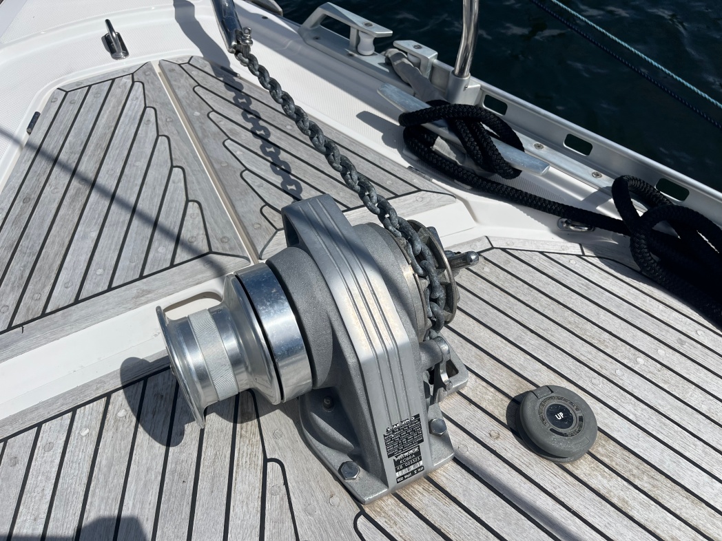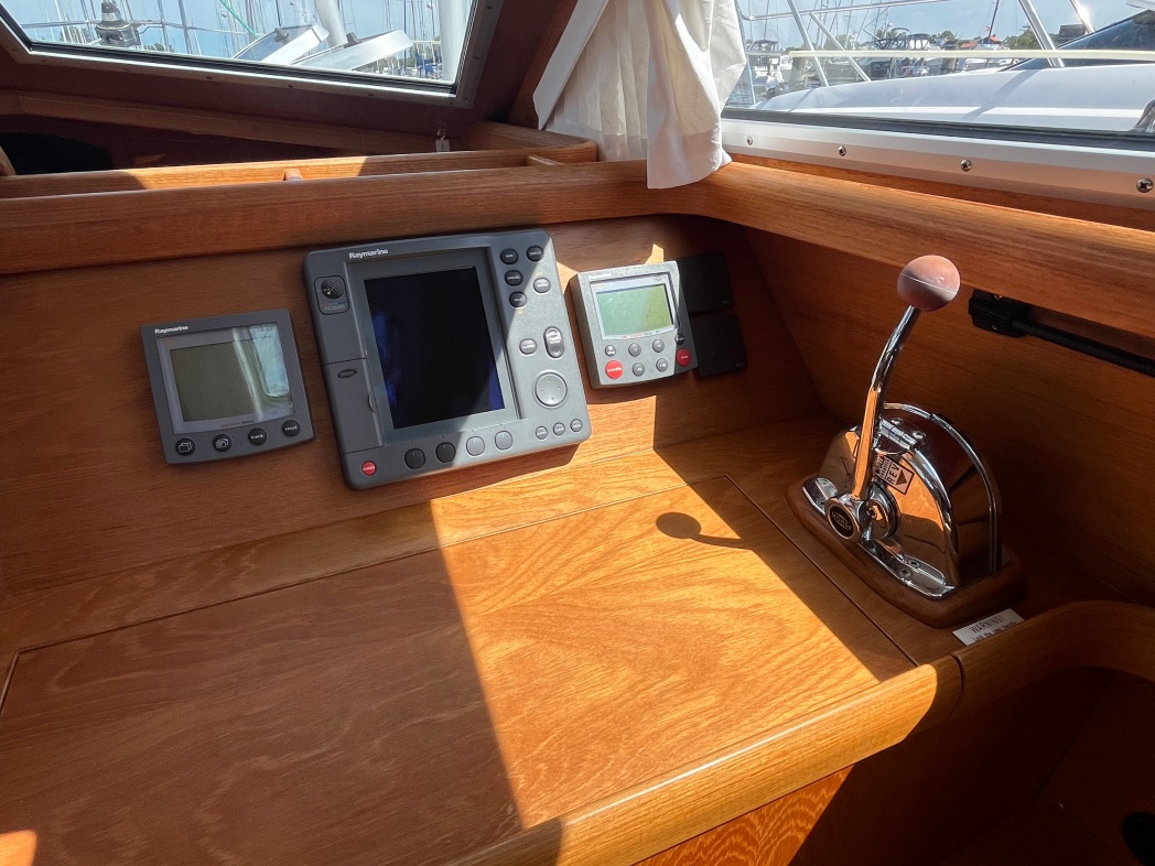Udstyrslisten byder bl.a. på: kortplotter - autopilot - elektrisk ankerspil - elektrisk spilhåndtag (nyere) - varme - bovpropel - formsyet vinterpresenning. Se komplet udstyrsliste under "Specifikation" længere nede på siden.
