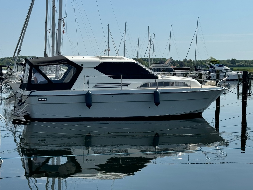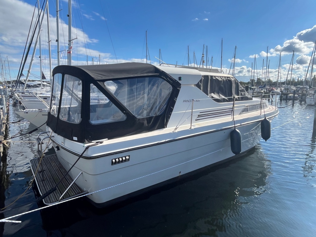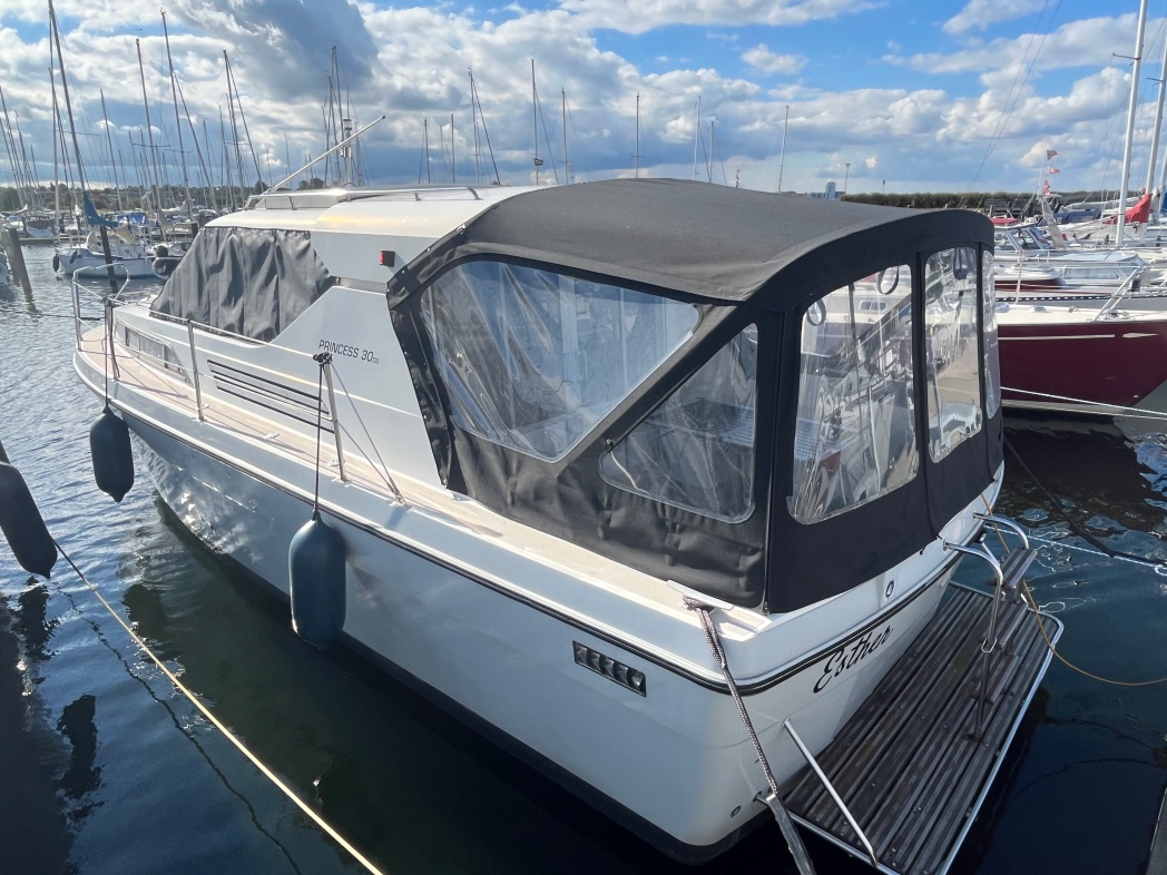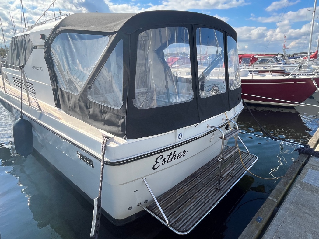 PRINCESS 30 DS er båd med mange gode kvaliteter. Den byder bl.a. på et fantastisk agterdæk med god plads til spisebord, stole og fast bænk agter. Herfra adgang til stor badeplatform, der selvfølgelig er oplagt at springe i vandet fra, når det er blevet tid til en badetur.